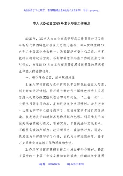 / 市人大办公室2025年意识形态工作要点