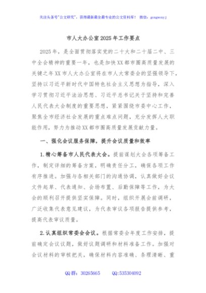 / 市人大办公室2025年工作要点