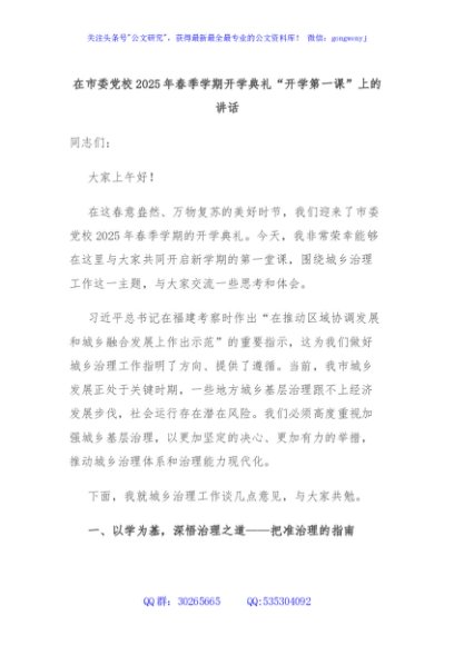 / 在市委党校2025年春季学期开学典礼“开学第一课”上的讲话