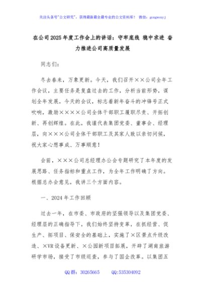 / 在公司2025年度工作会上的讲话:守牢底线 稳中求进 奋力推进公司高质量发展