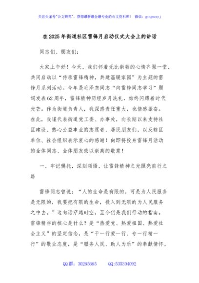 / 在2025年街道社区雷锋月启动仪式大会上的讲话