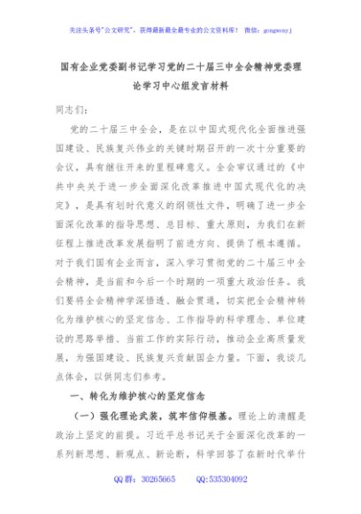 / 国有企业党委副书记学习党的二十届三中全会精神党委理论学习中心组发言材料