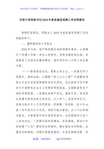 / 区统计局党组书记2024年度抓基层党建工作述职报告