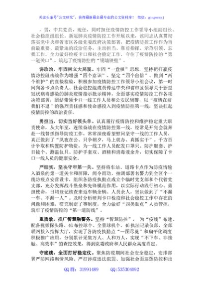 新冠肺炎疫情防控工作先进事迹材料