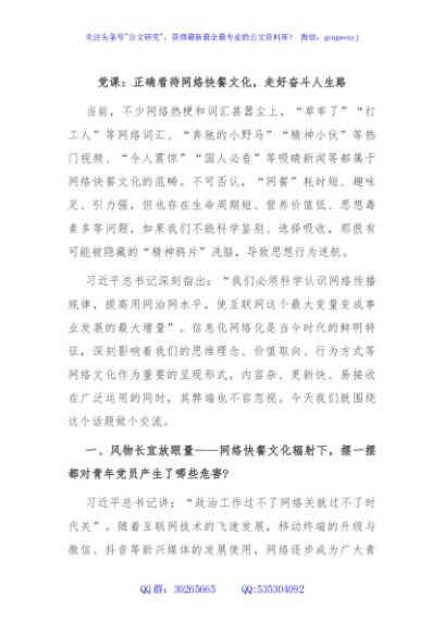 党课:正确看待网络快餐文化,走好奋斗人生路