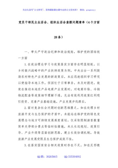 / 党员干部民主生活会、组织生活会查摆问题清单(4个方面28条)