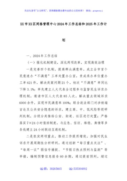 / XX市XX区网格管理中心2024年工作总结和2025年工作计划