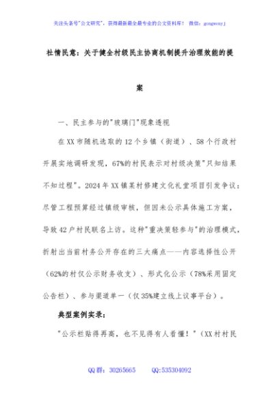 / 2025年社情民意:关于健全村级民主协商机制提升治理效能的提案