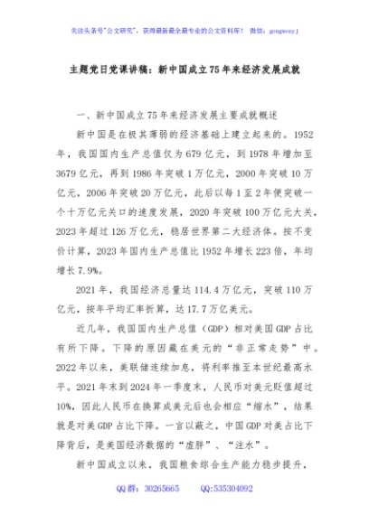/ 主题党日党课讲稿:新中国成立75年来经济发展成就
