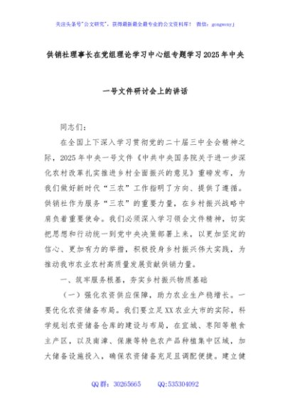 / 供销社理事长在党组理论学习中心组专题学习2025年中央一号文件研讨会上的讲话