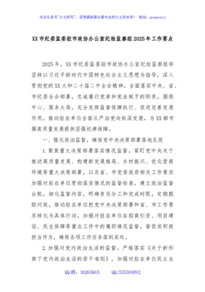 / XX市纪委监委驻市政协办公室纪检监察组2025年工作要点