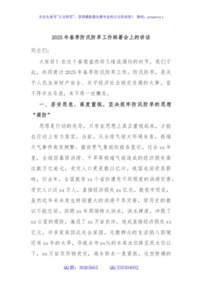 / 2025年春季防汛防旱工作部署会上的讲话