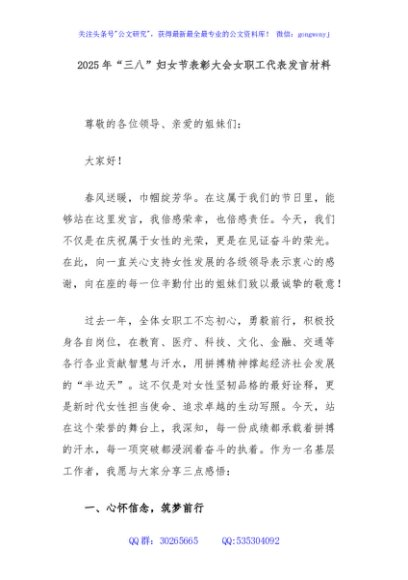 / 2025年“三八”妇女节表彰大会女职工代表发言材料
