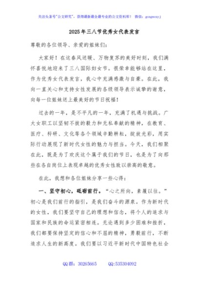 2025年“三八”妇女节表彰大会女职工代表发言材料