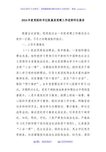 / 2024年度党组织书记抓基层党建工作述职评议报告