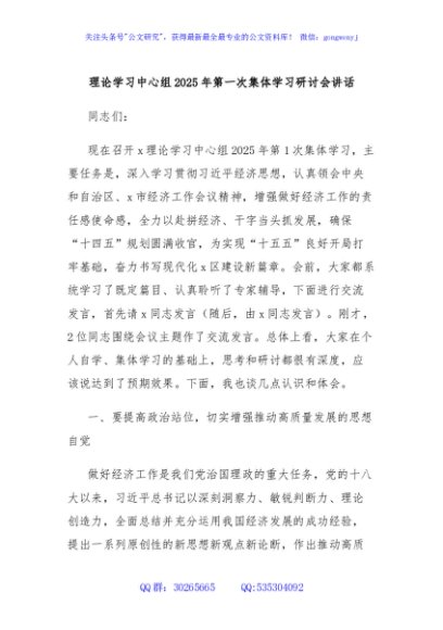 / 理论学习中心组2025年第一次集体学习研讨会讲话