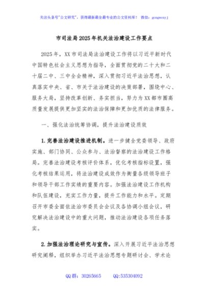 / 市司法局2025年机关法治建设工作要点