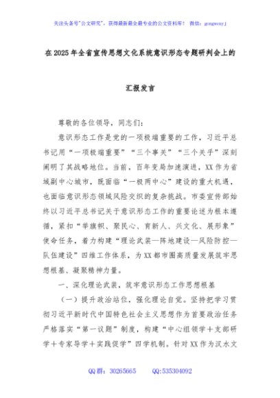 / 在2025年全省宣传思想文化系统意识形态专题研判会上的汇报发言