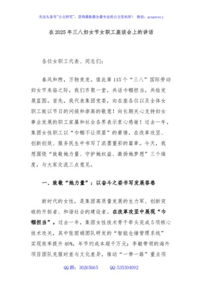 / 在2025年三八妇女节女职工座谈会上的讲话