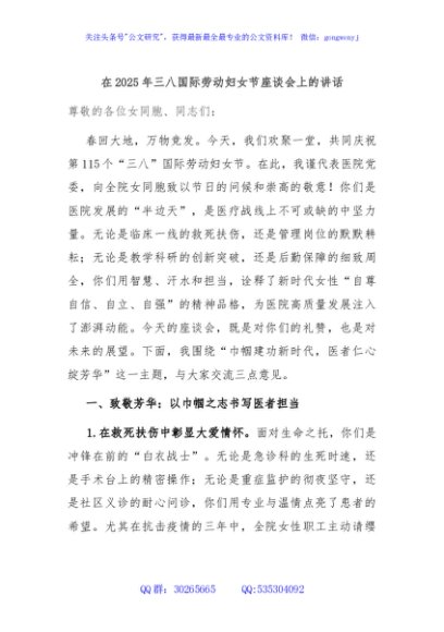 / 在2025年三八国际劳动妇女节座谈会上的讲话
