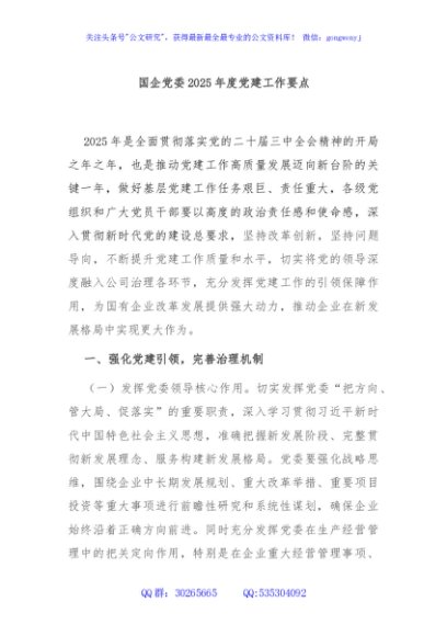 / 国企党委2025年度党建工作要点