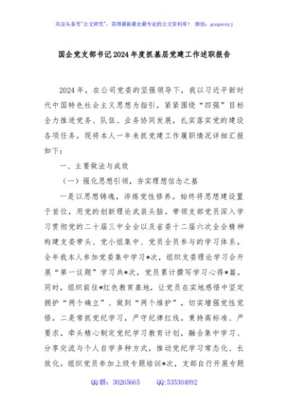 / 国企党支部书记2024年度抓基层党建工作述职报告