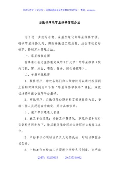 / 后勤保障处零星维修管理办法