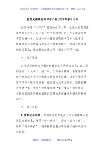 / 医院党委理论学习中心组2025年学习计划