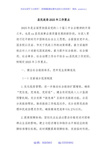 / 县民政局2025年工作要点