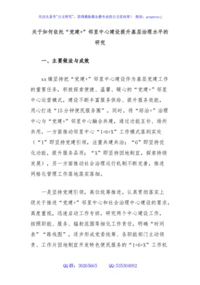/ 关于如何依托“党建+”邻里中心建设提升基层治理水平的研究