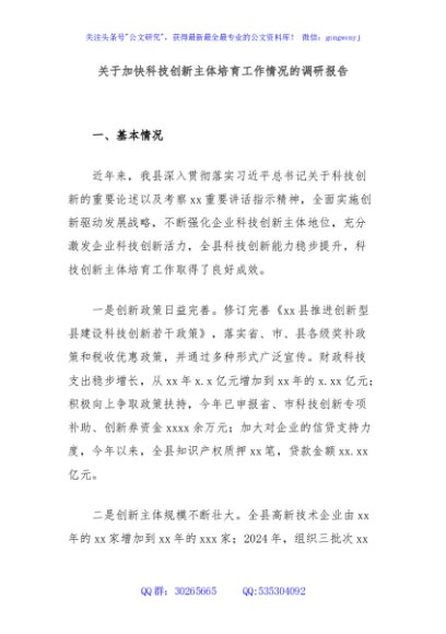 / 关于加快科技创新主体培育工作情况的调研报告
