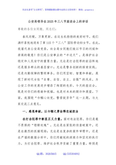 / 公安局领导在2025年三八节座谈会上的讲话