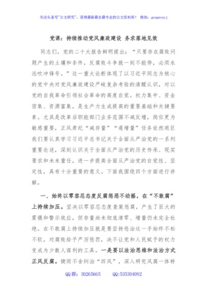 / 党课:持续推动党风廉政建设 务求落地见效