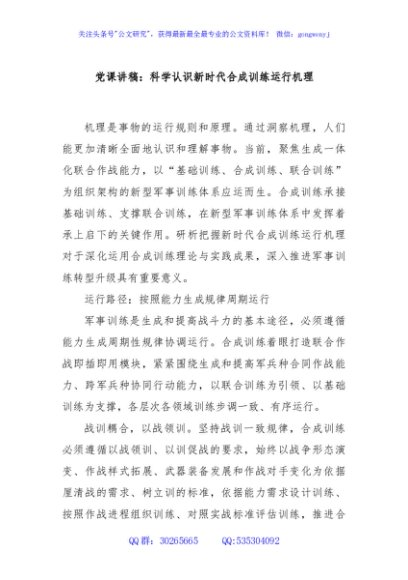 / 党课讲稿:科学认识新时代合成训练运行机理
