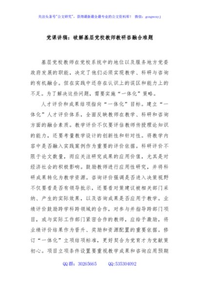 / 党课讲稿:破解基层党校教师教研咨融合难题