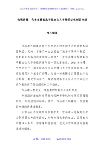 / 党课讲稿:完善支撑高水平社会主义市场经济体制的市场准入制度
