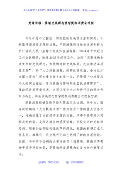 / 党课讲稿:将新发展理念贯穿提振消费全过程