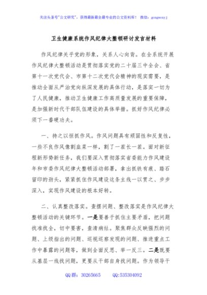 / 卫生健康系统作风纪律大整顿研讨发言材料