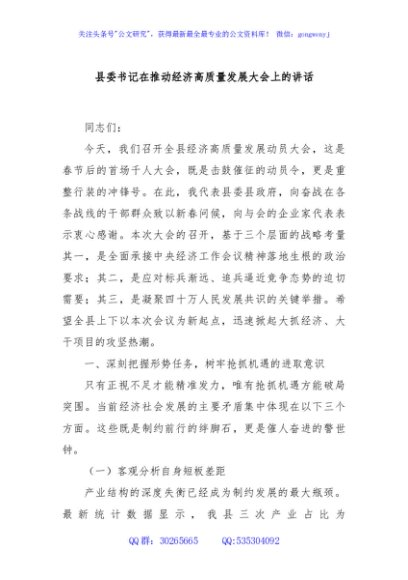 / 县委书记在推动经济高质量发展大会上的讲话