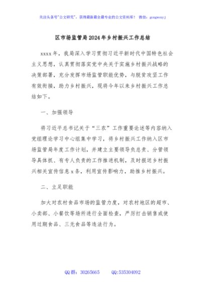/ 区市场监管局2024年乡村振兴工作总结