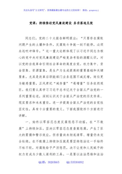 / 党课:持续推动党风廉政建设 务求落地见效