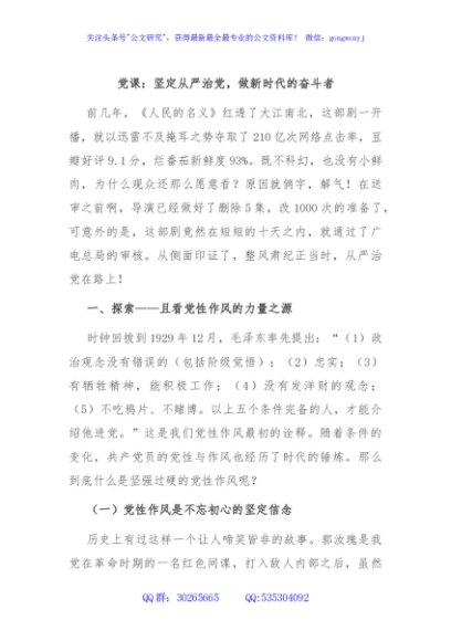 / 党课:坚定从严治党,做新时代的奋斗者