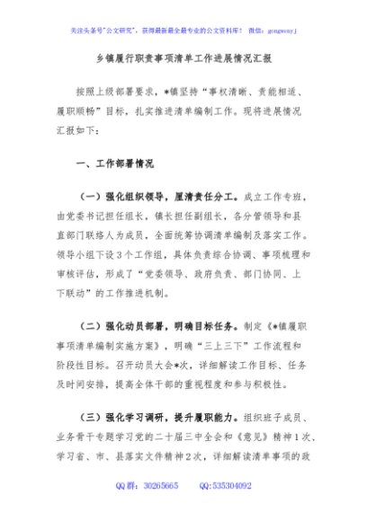 / 乡镇履行职责事项清单工作进展情况汇报