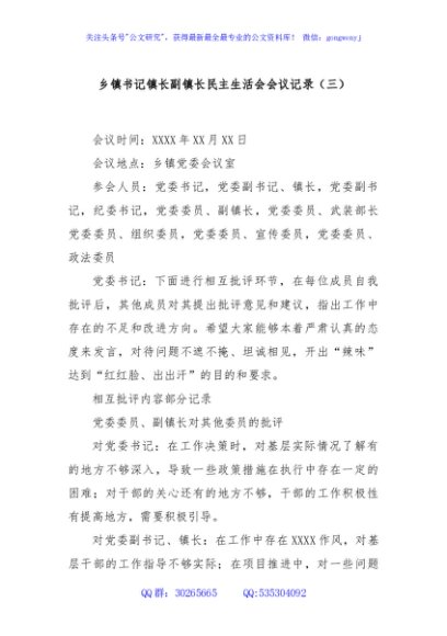 / 乡镇书记镇长副镇长民主生活会会议记录(三)