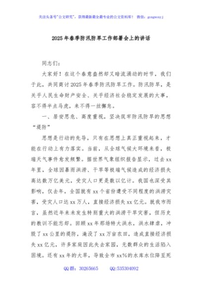 / 2025年春季防汛防旱工作部署会上的讲话