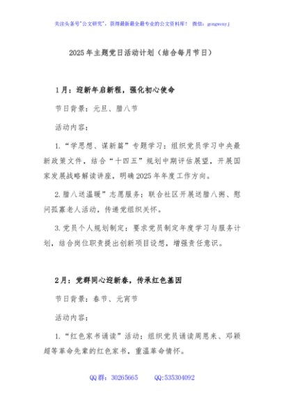 / 2025年主题党日活动计划(结合每月节日)