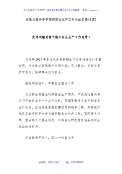 (3篇)交通运输局春节期间安全生产工作总结汇编