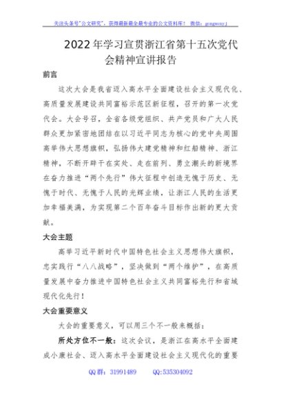2022年浙江省第十五次党代会精神宣讲