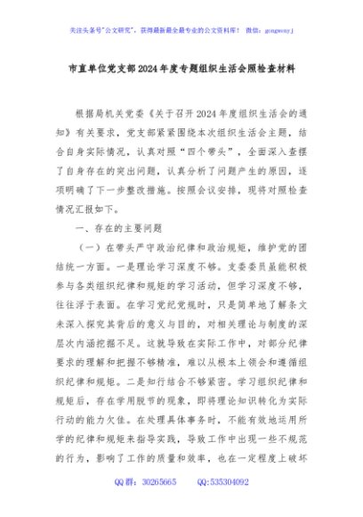 / 市直单位党支部2024年度专题组织生活会照检查材料