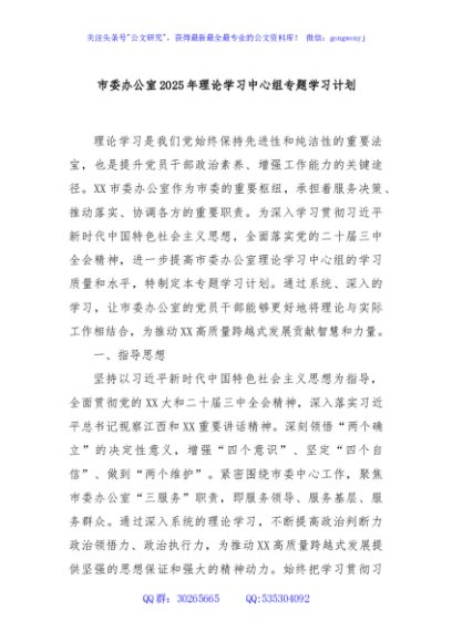 / 市委办公室2025年理论学习中心组专题学习计划